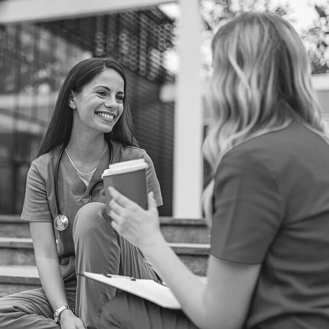 During regular peer-to-peer meetings, you’ll be able to talk through workplace experiences in a safe space with nurses, instructors, and other residents.