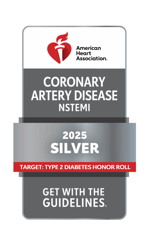 Our TARGET: Type 2 Diabetes Honor Roll awards recognize our ability to ensure that patients with Type 2 diabetes, who might be at higher risk of complications, receive the most up-to-date, evidence-based care when hospitalized due to heart attack.
