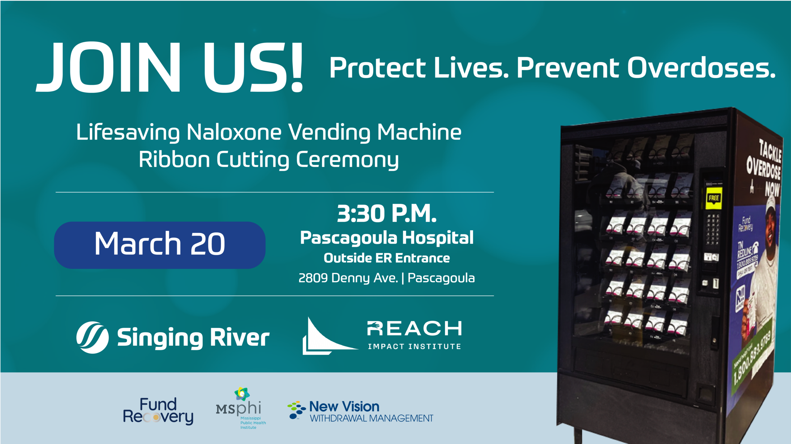 Join us for a ribbon cutting ceremony to celebrate the installation of a lifesaving naloxone vending machine outside of the emergency department at Pascagoula Hospital and learn how we can protect lives and prevent overdoses.